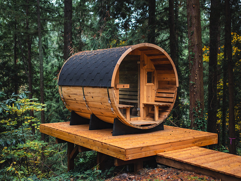 Barrel Outdoor Sauna w/ Porch - 6 Person
