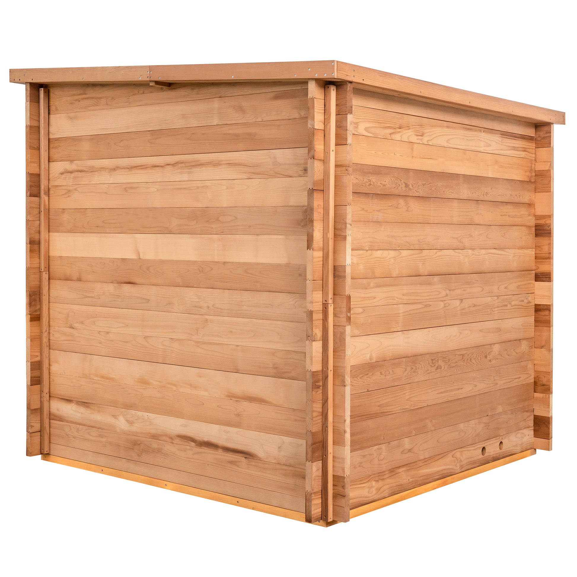 Step into the Garden Sauna, a beautifully crafted retreat made from durable hemlock thermowood. Its timeless design features two-level benches for customizable heat, natural insulation, and an open lower bench for easy cleaning and storage. Simple assembly lets you enjoy the benefits of Finnish heat with minimal effort.