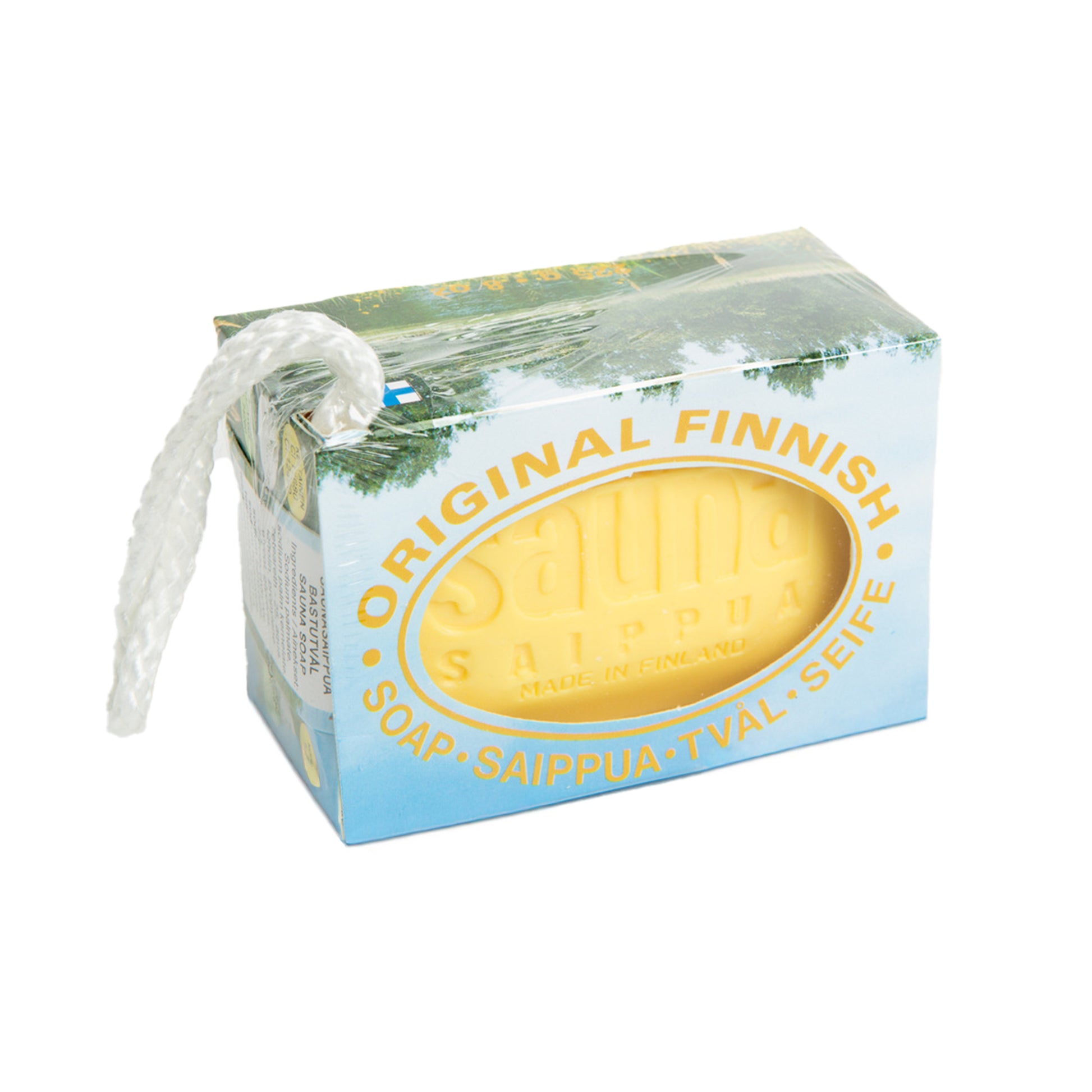 Formulated with natural oils, this soap nourishes the skin while washing away impurities—perfect for use in the sauna or shower. The convenient rope allows for easy hanging and drying between uses, helping your soap last longer.